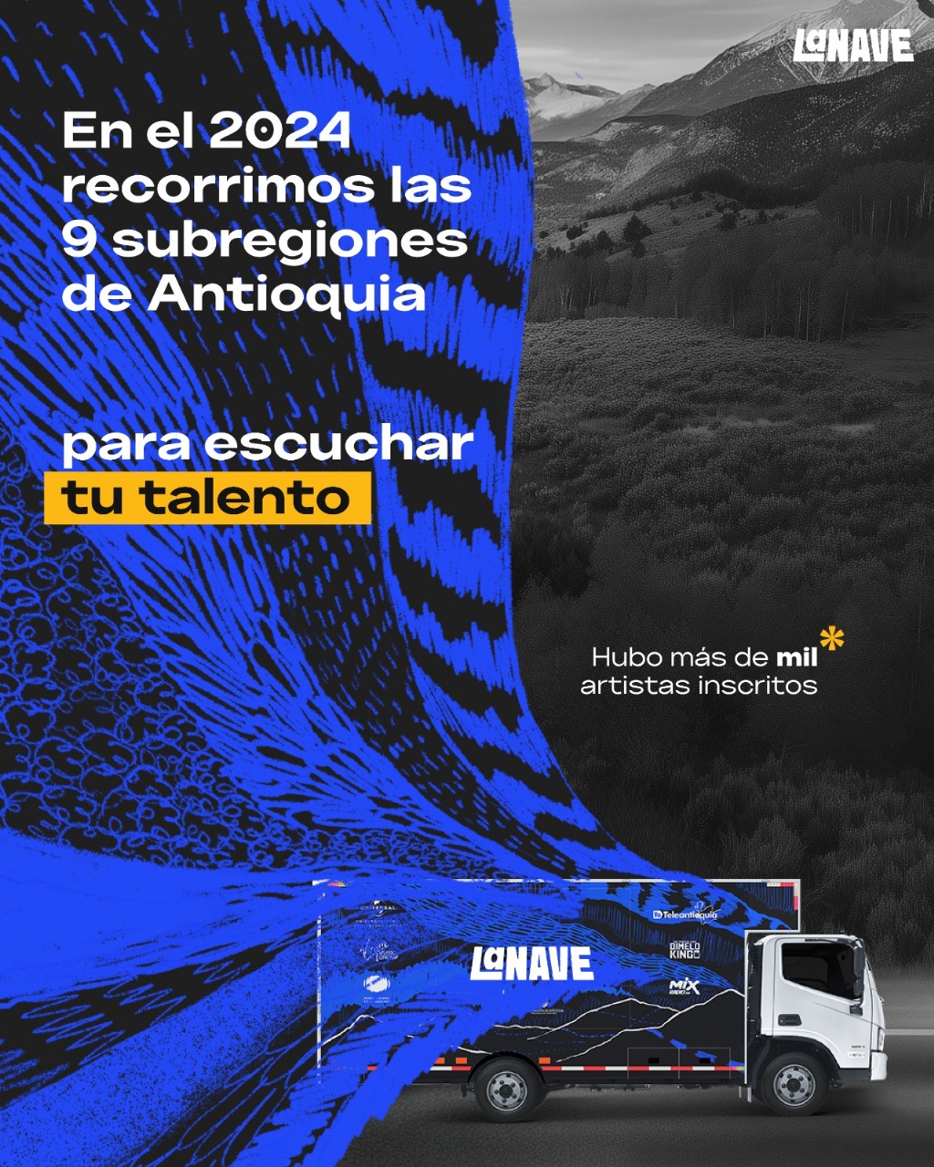 Con el propósito de promover el arte, la cultura y la integración social en el departamento, la Gobernación de Antioquia, a través del Instituto de Cultura y Patrimonio de Antioquia -ICPA-, abre la convocatoria de La Nave 2.0, un proyecto que regresa renovado para recorrer los municipios antioqueños, donde se conecta a artistas emergentes con la industria musical y las comunidades.