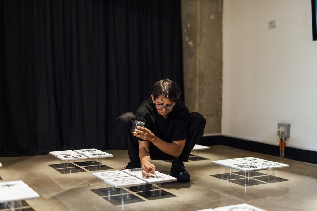 La obra ganadora, “Entre líneas”, del artista Anturio Toro, explora la vida en los inquilinatos del centro de Medellín a través de una instalación gráfica que combina dibujo, papeles, cinta adhesiva y una intervención en tiza. Inspirado en los patrones lineales del popular colchón de rayas azules y los registros de pago de los residentes, Toro crea una poética visual que revela las dinámicas de precariedad y transacción que atraviesan estos espacios urbanos. Con 15 dibujos en técnicas mixtas, la propuesta invita a mirar de cerca lo cotidiano, aquello que muchas veces se esconde entre líneas. El artista recibió un estímulo de $11.000.000 por su creación.