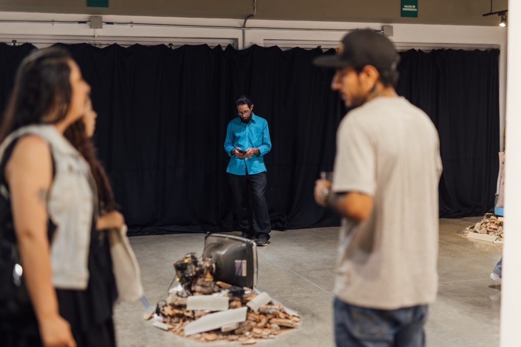 El tercer puesto fue para José Alejandro Gómez Majé, con su obra “Gallo enterrado”, una instalación que se sumerge en la vida comunitaria de La Playita, un territorio moldeado por el río Medellín en Moravia. Allí, el artista transforma el fútbol en un ritual simbólico, donde el grito de “¡GOOOL!” emerge como un canto de resistencia y pertenencia. Entre agua, arena y memoria, el cuerpo semienterrado del jugador representa la voz colectiva que busca ser escuchada. La pieza, de profunda carga social y estética, recibió un estímulo de $5.000.000.